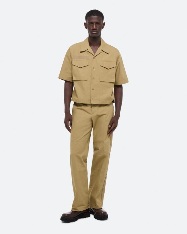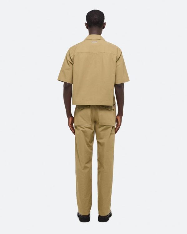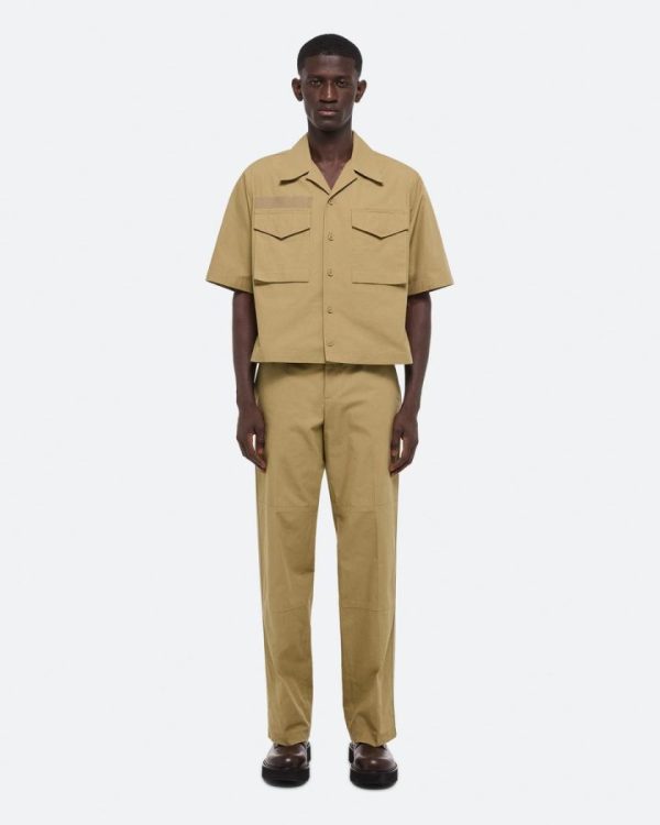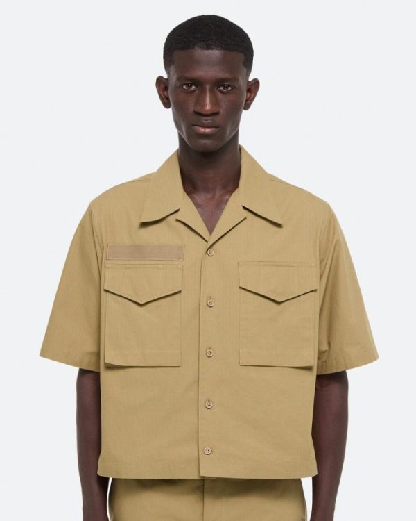 Short-sleeved utility shirt in ripstop cotton, inspired by military uniforms. Matches the Field Carpenter Pants.Fits true to size. Model is 6’1” and wears size M.