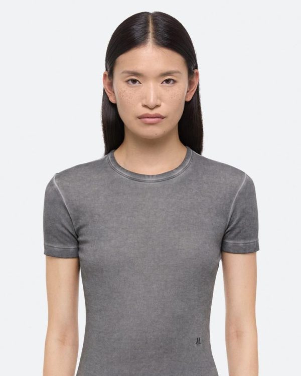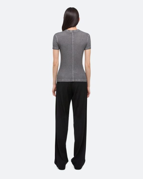 Slim-fit crewneck tee in ultra-soft cotton modal rib. A garment dyeing process gives each piece a unique wash with vintage depth, highlighted by soft chalk-line distressing at the seams.Fits true to size. Model is 6’1” and wears size S.