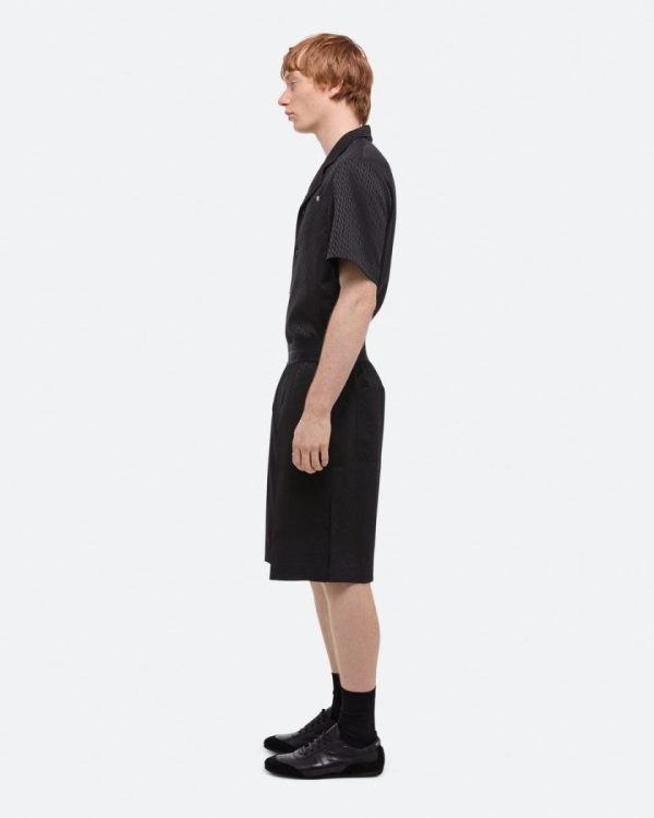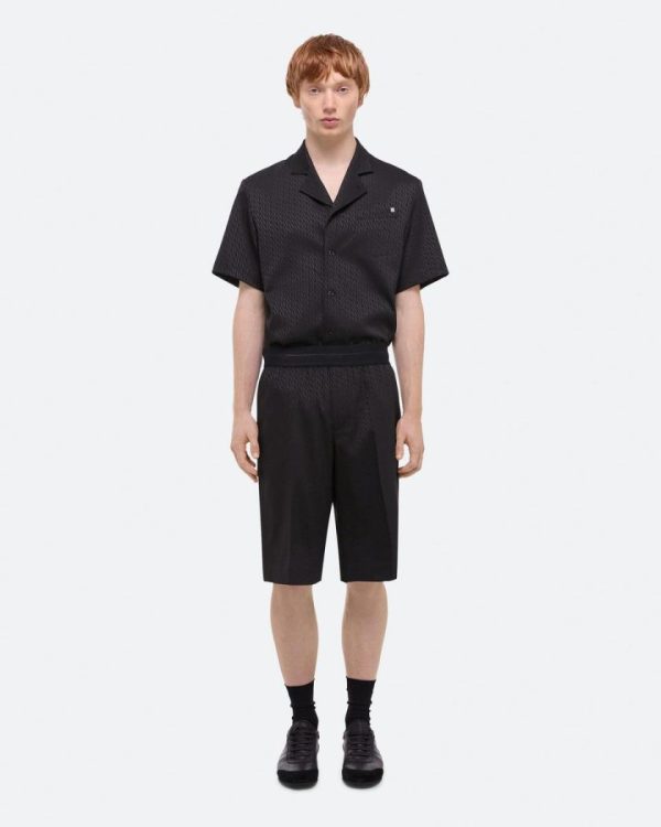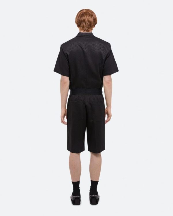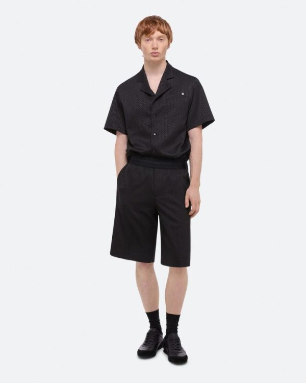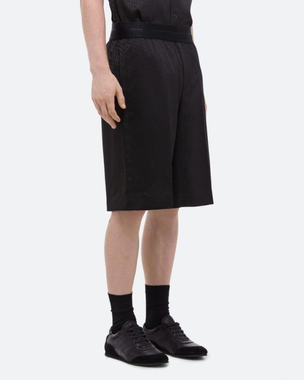Tailored car shorts in satin logo jacquard, with a straight leg cut and hidden side pockets. Matches the Oversized Pajama Shirt and Modest Jacquard Shirt.Fits true to size. Model is 6’1” and wears size 32.