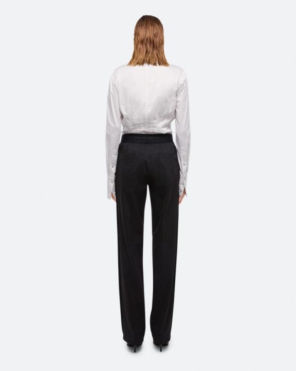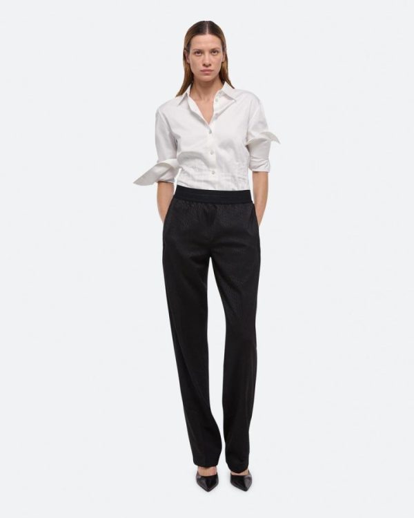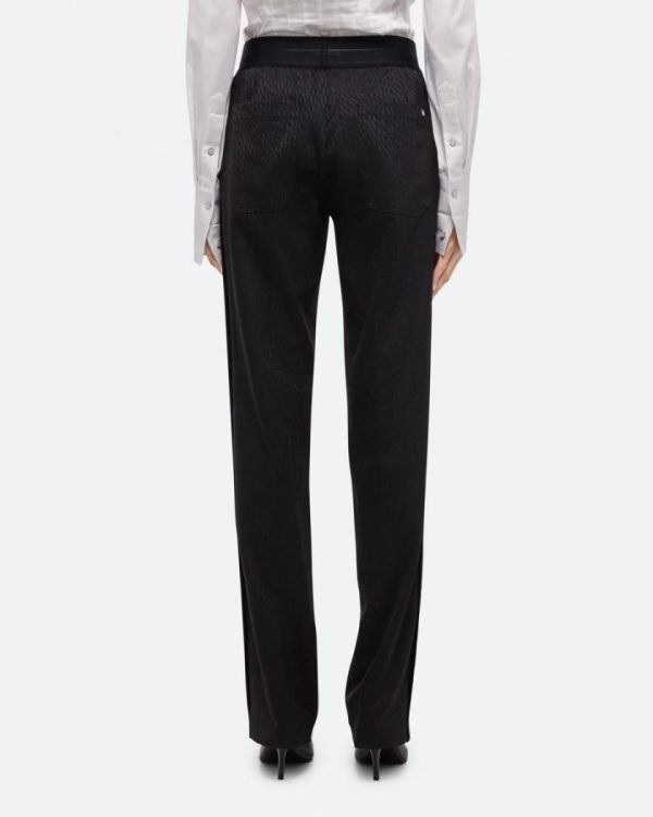 Tailored pull-on trousers in satin logo jacquard, with a straight leg and hidden side pockets. Matches the Modest Jacquard Vest.Fits true to size. Model is 6’1” and wears size 2.