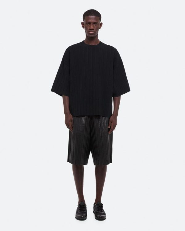 Oversized tee in recycled viscose knit with pleated texture.Fits true to size. Model is 6’1” and wears size M.