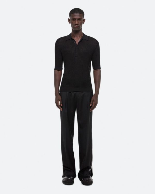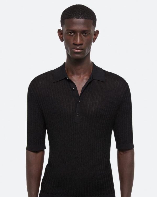 Fitted polo shirt in sheer pointelle rib knit.Fits true to size. Model is 6’1” and wears size M.