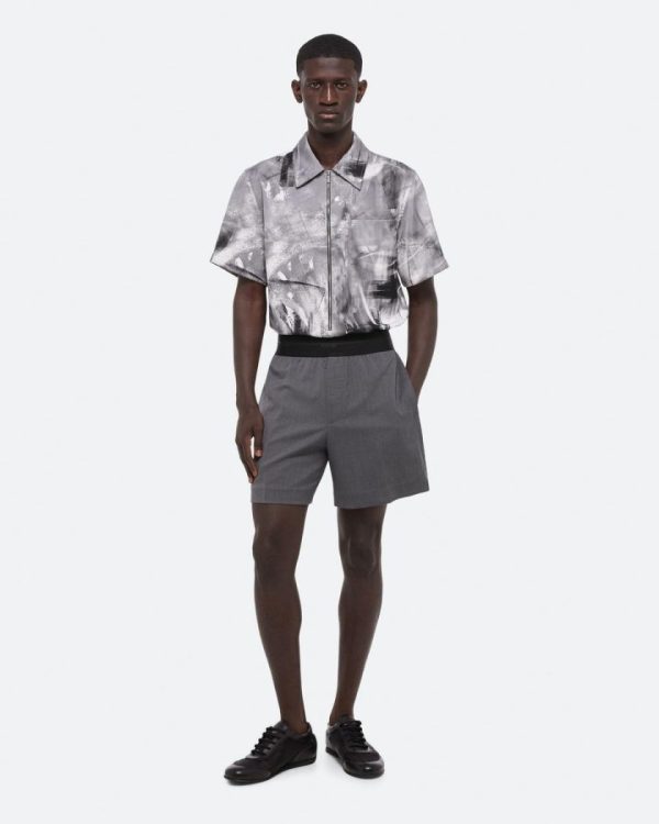 Tailored car shorts in satin logo jacquard, with a straight leg cut and hidden side pockets. Matches the Boxy Shirt.Fits true to size. Model is 6’1” and wears size 32.