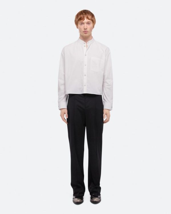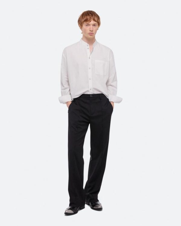 Classic trousers in classic wool suiting with a wider leg and partially elasticized waistband. Matches the Relaxed Wool Bomber.Fits true to size. Model is 6’1” and wears size 32.