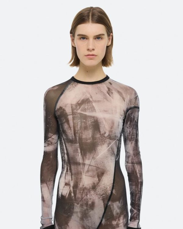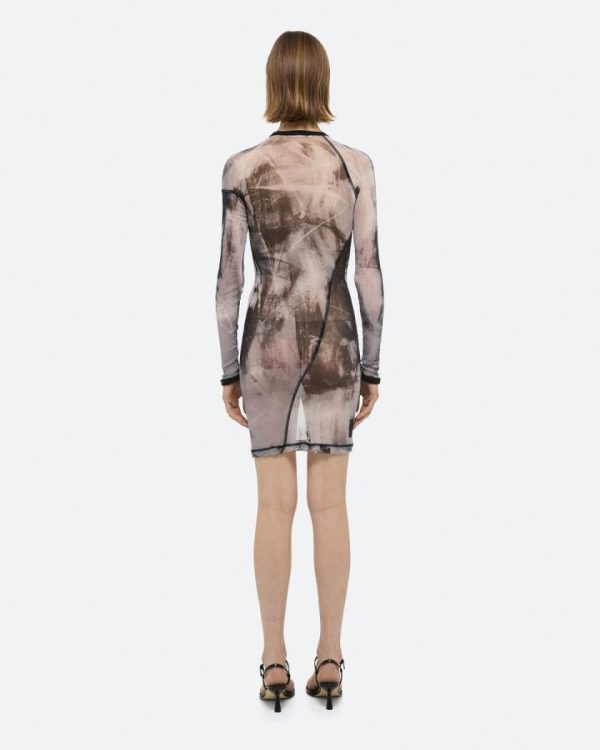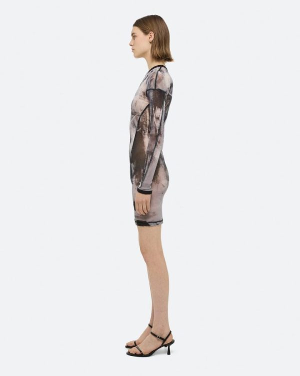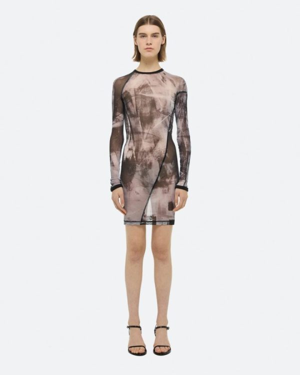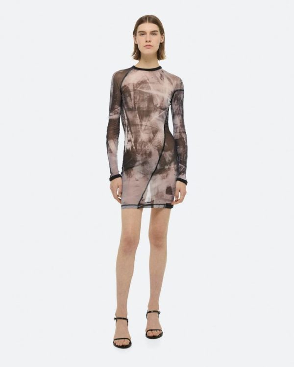 Long-sleeve dress in a lightweight sheer mesh with an all-over print by Creative Director Peter Do. Seams wrap around the body for a close fit.Fits true to size. Model is 5’10” and wears size S.