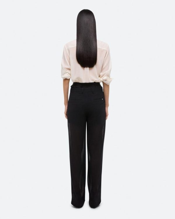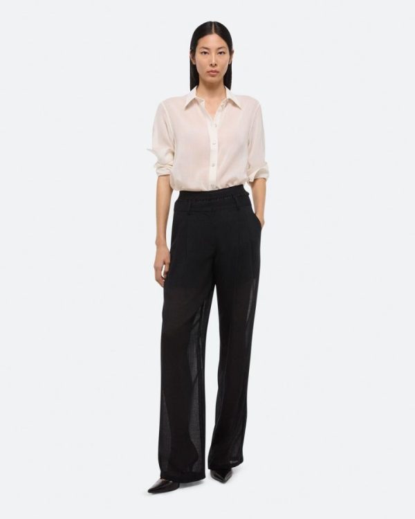 Relaxed trouser with double pleats at front in lightweight wool chiffon. Includes detachable tonal boxers with logo waistband. Matches the Sheer Classic Shirt.Fits true to size. Model is 5’11” and wears size 2.