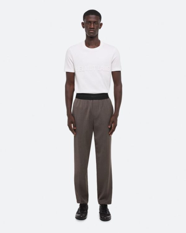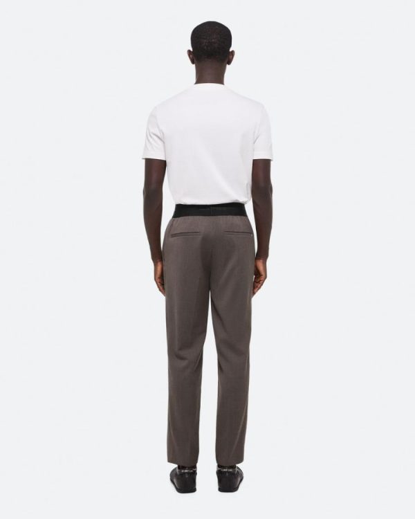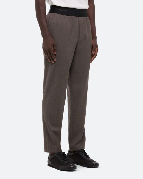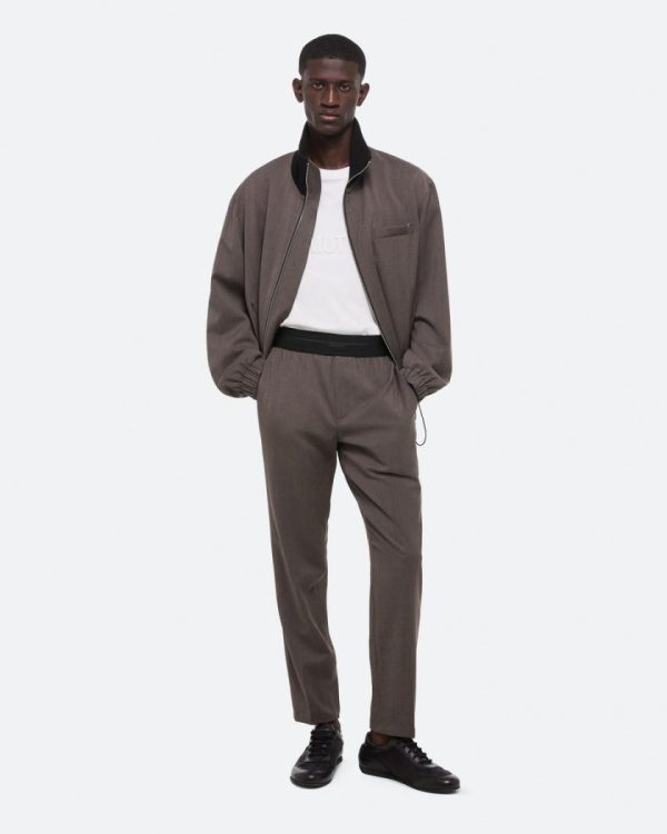 Tailored pull-on trousers in Italian virgin wool suiting. Matches the Relaxed Wool Bomber.Fits true to size. Model is 6’1” and wears size 32.