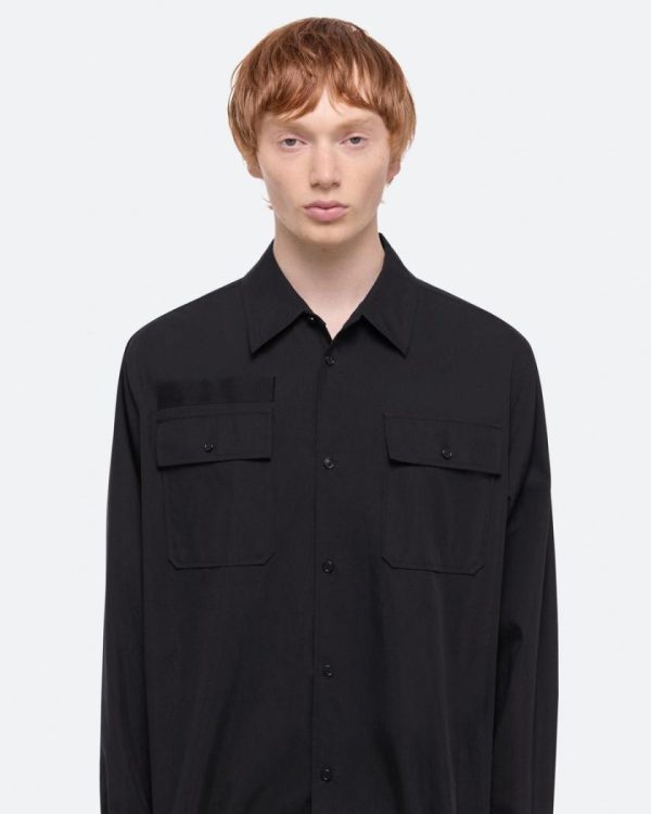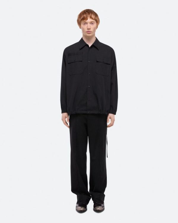 Classic button-down shirt in a crisp cotton-nylon blend inspired by military uniforms. Cinch the bungee cord in the hem for a puffed bomber shape.Fits true to size. Model is 6’1” and wears size M.