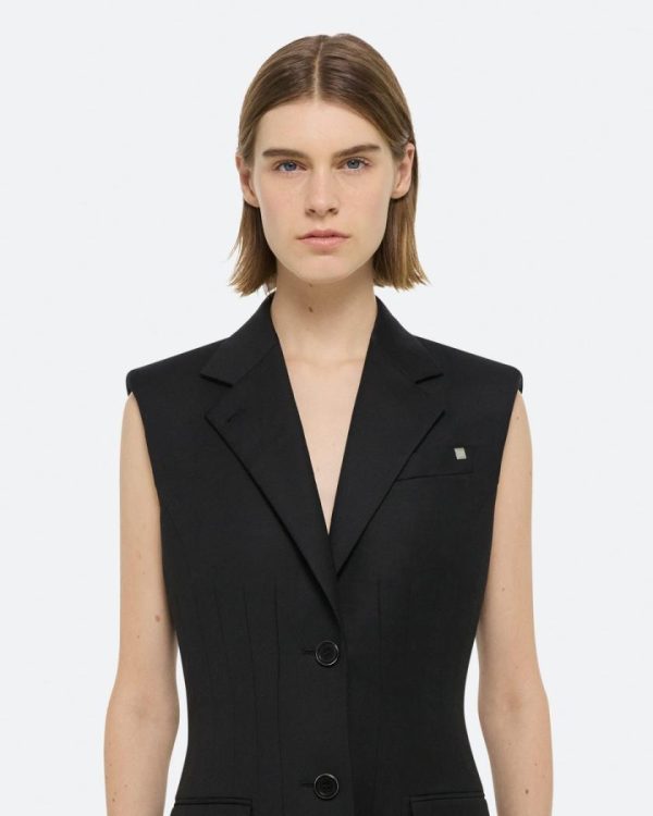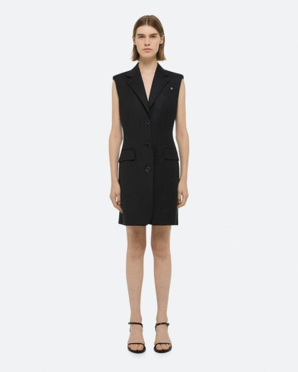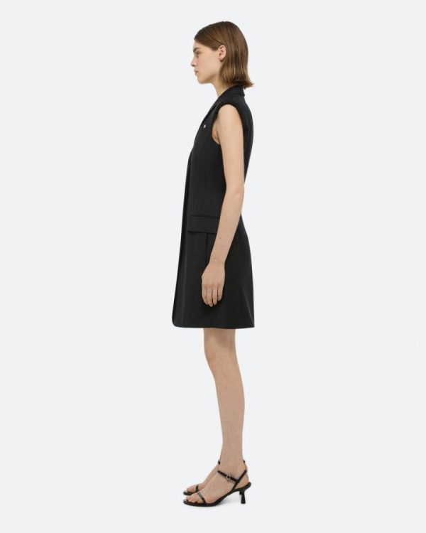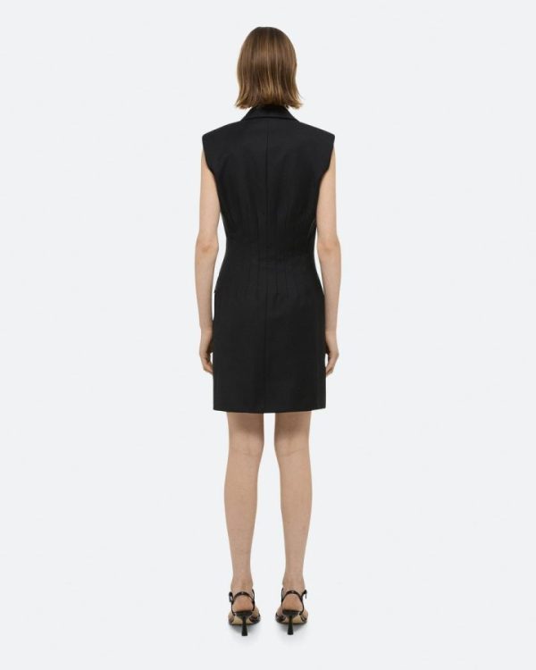 Tailored blazer dress with a fitted waist sculpted by darts. Made in wool twill with notched lapels and waist flap pockets.Fits true to size. Model is 5’10” and wears size 2.